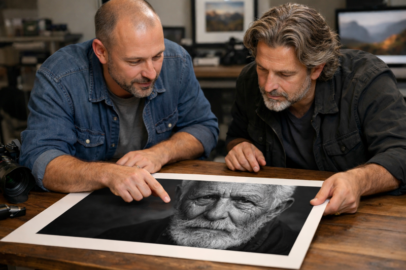 U krijgt persoonlijk advies van specialisten die uw artistieke signatuur begrijpen. Professionele beeldbewerking zorgt voor optimale balans in kleur, contrast en scherpte, zodat uw werk exact aansluit bij uw visie en presentatiedoel. Altijd zorgvuldig afgestemd op het gekozen materiaal.